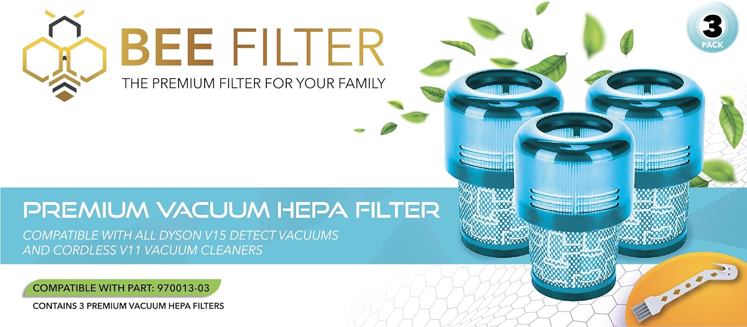- But why choose Bee Filter Premium? Our Bee Filter Premium filter replacements with advance technology and quality materials are not only compatible with the Dyson V11 vacuum and Dyson V15, but they also promise longevity. Say goodbye to frequent Dyson vacuum filter replacements and embrace a prolonged, efficient cleaning experience.